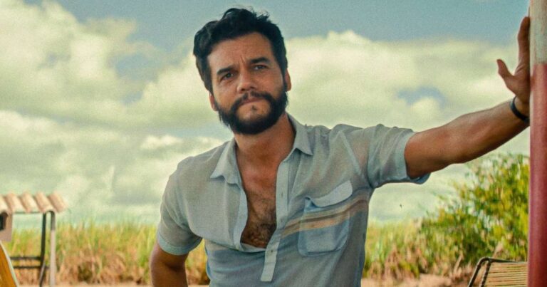 Mendonça Filho builds up a layered story where every character, major or minor, feels completely real. In Recife, Marcelo’s Jaws-obsessed son Fernando is living with his father-in-law, Sr. Alexandre, a projectionist at the local cinema where men get blowjobs whilst watching famously horny film The Omen. Meanwhile, crooked police chief Euclides (Robério Diógenes) and his sons are attempting to cover up a murder after a severed leg is found in the mouth of a shark, creating a media frenzy (the clearly homophobic leg later goes on to beat up gay men at the park – I’m serious). Udo Keir (RIP) cameos as a Holocaust survivor whom Euclides mistakes for a nazi fugitive. A flashback cements Marcelo’s wife Fátima as a classic dead wife haunting the narrative, but also a fierce voice in her own right. And at the same time energy boss Ghirotti (Luciano Chirolli) sends two hitmen, father and stepson Augusto (Roney Villela) and Bobbi (the… ahem, visually appealing Gabriel Leone), to kill Marcelo. If this is starting to sound confusing, don’t worry – I’m pretty sure it’s meant to be. In the film’s nature, it is not immediately clear what purpose these storylines fulfil as they seem to end up left by the wayside. But as for painting a fully detailed picture of the setting, there is not one side character who doesn’t leave some kind of memorable impression, from the smallest role of the petrol station attendant, to the women who work with Marcelo at the Institute of Identification, where he searches for proof of his mother’s existence. Seeing the film, it’s no wonder it bagged an inaugural Best Casting Oscar nomination when it creates such a wide but distinct tapestry of lives, and honestly I think it would be an exceedingly deserving winner.